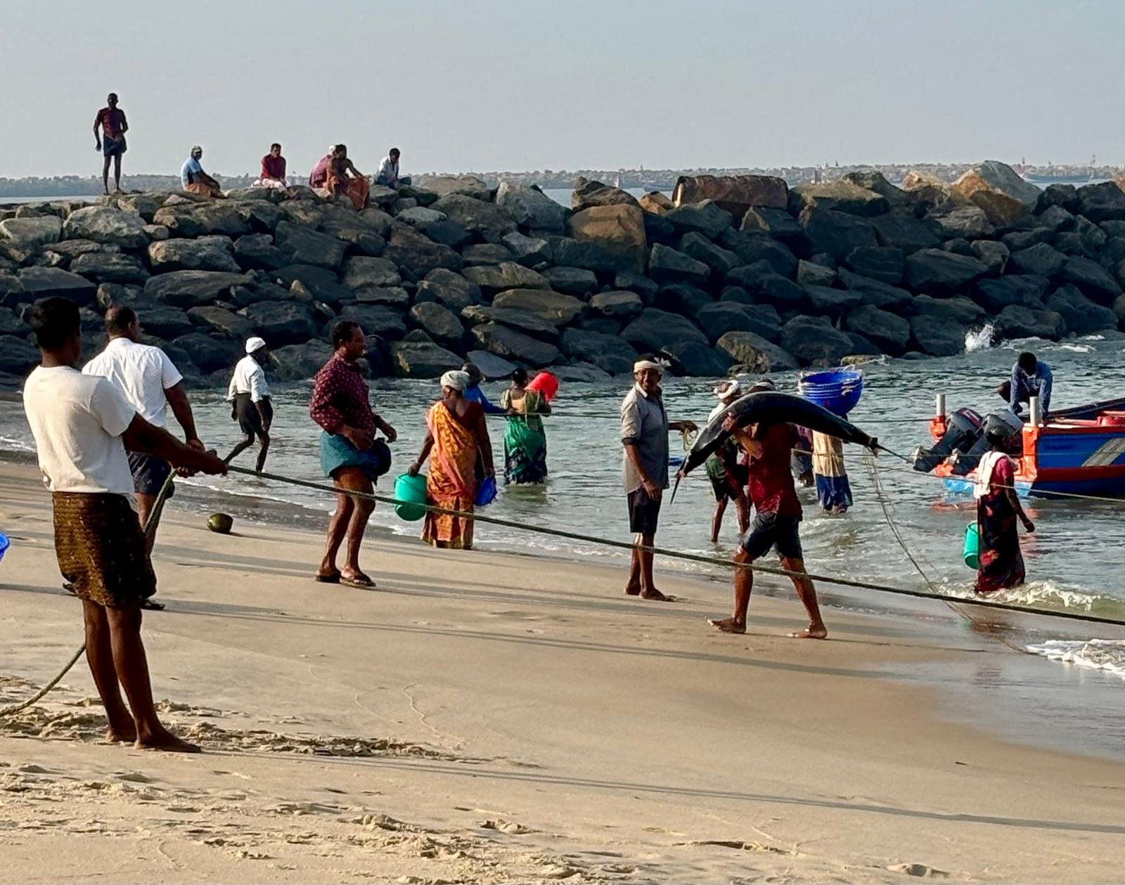 Morning at 6.30 AM (latest 7 AM), join a local village girl as your guide for a tour of the nearby fishing village to witness the early activities of a fishing community. Your mode of transport will be an auto rickshaw (Tuk Tuk). Life in the villages around Mararikulam is both fascinating and endearing—boats landing with fresh catch from the sea, workers bringing the catch from the boat to the shore, middlemen bargaining for their stock, women rushing and loading baskets with the freshest fish, and retailers heading to the harbour for their livelihood. Life all around is so active! Be in the midst of the crowd, watch them closely, and capture moments with your camera. If possible, feel free to interact with them. Meanwhile, you can also try a chai (tea) along with some local snacks like kozhukkatta, banana fritters, bonda, etc.